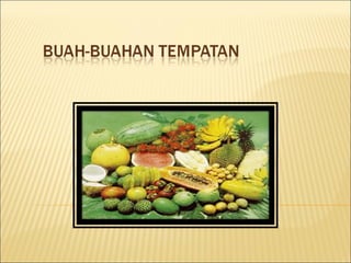 Buah-buahan ialah sumber utama vitamin yang diperlukan oleh badan kerana ia dapat memastikan tubuh badan kita sentiasa sihat dan tahan dengan serangan penyakit. Disebalik rasanya yang enak buah. Definisi buah-buahan tempatan menurut Kamus Dewan ialah buah-buahan yang dikeluarkan dalam sesebuah negara.